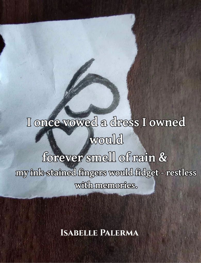 I once vowed a dress I owned would forever smell of rain and my ink-stained fingertips would fidget – restless with memories, but now, when I cradle myself to sleep, my eyes are empty.